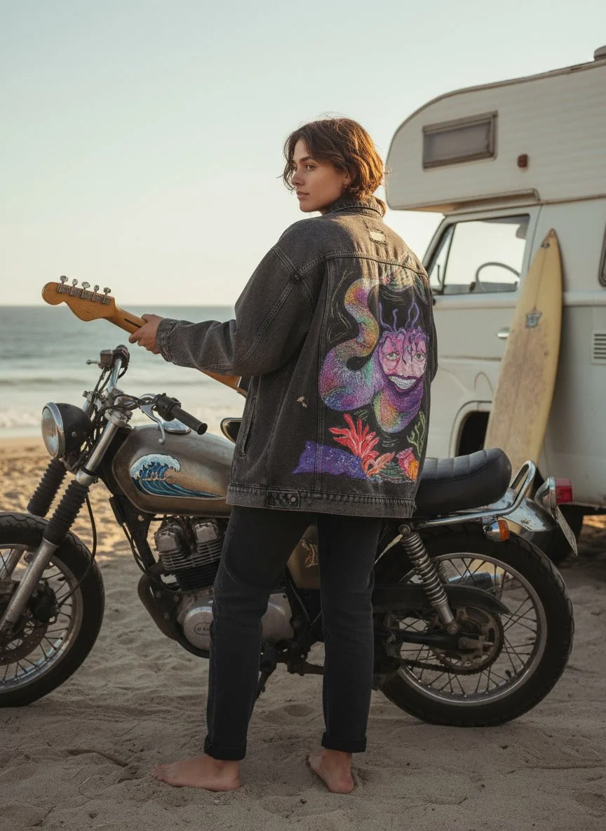 Créer cette collection, c’était imaginer des dessins uniques à intégrer sur des vestes en jean et t-shirts.