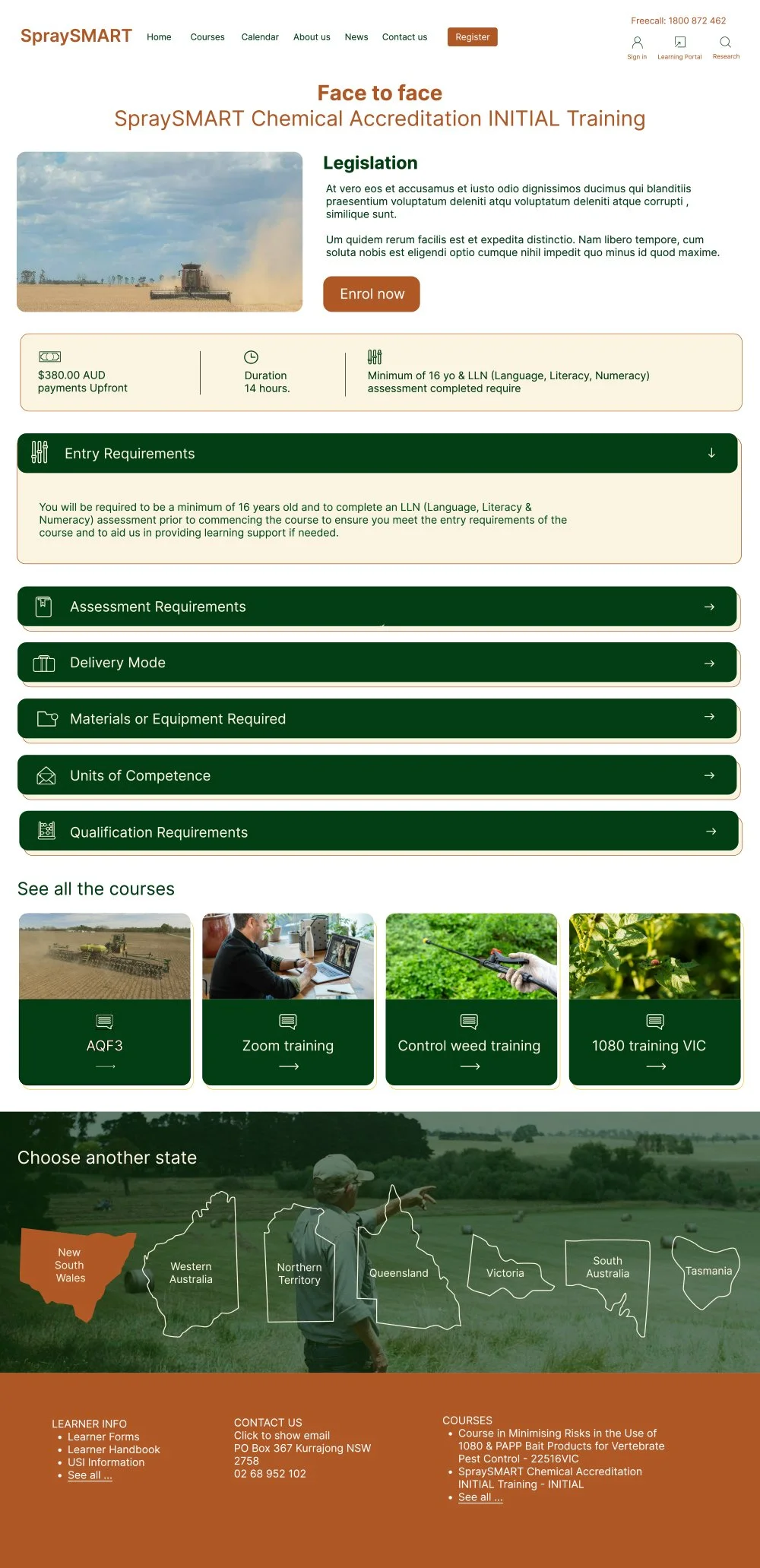 Pour cet organisme spécialisé dans la formation à l’utilisation sûre des pesticides, j’ai conçu une expérience digitale claire et pédagogique. Mon travail a consisté à structurer l’information et à créer une interface intuitive, permettant de rendre accessibles les contenus complexes tout en respectant les normes de l’industrie.