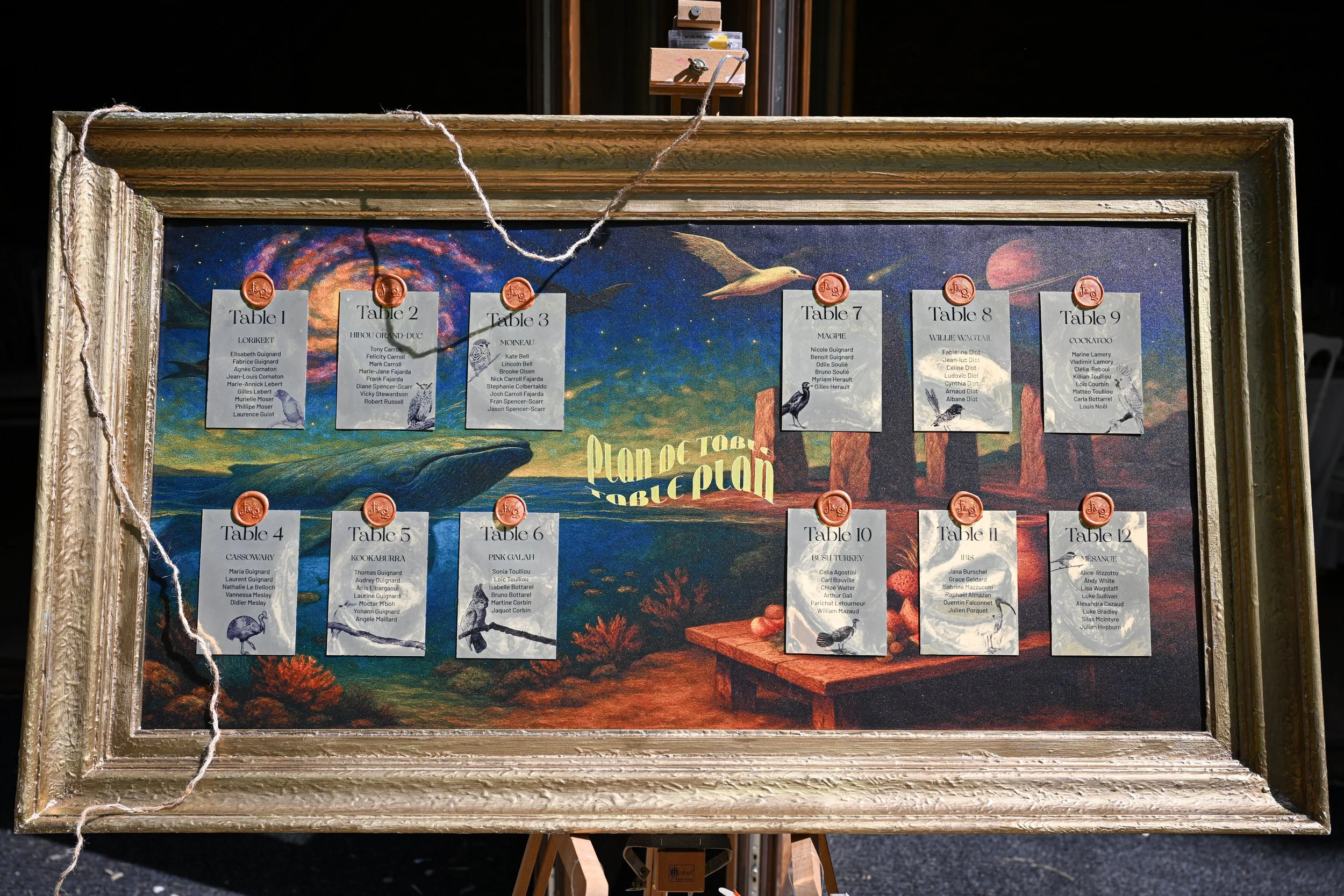 Plan de table, menus, invitations, signalétique et cartes à jouer